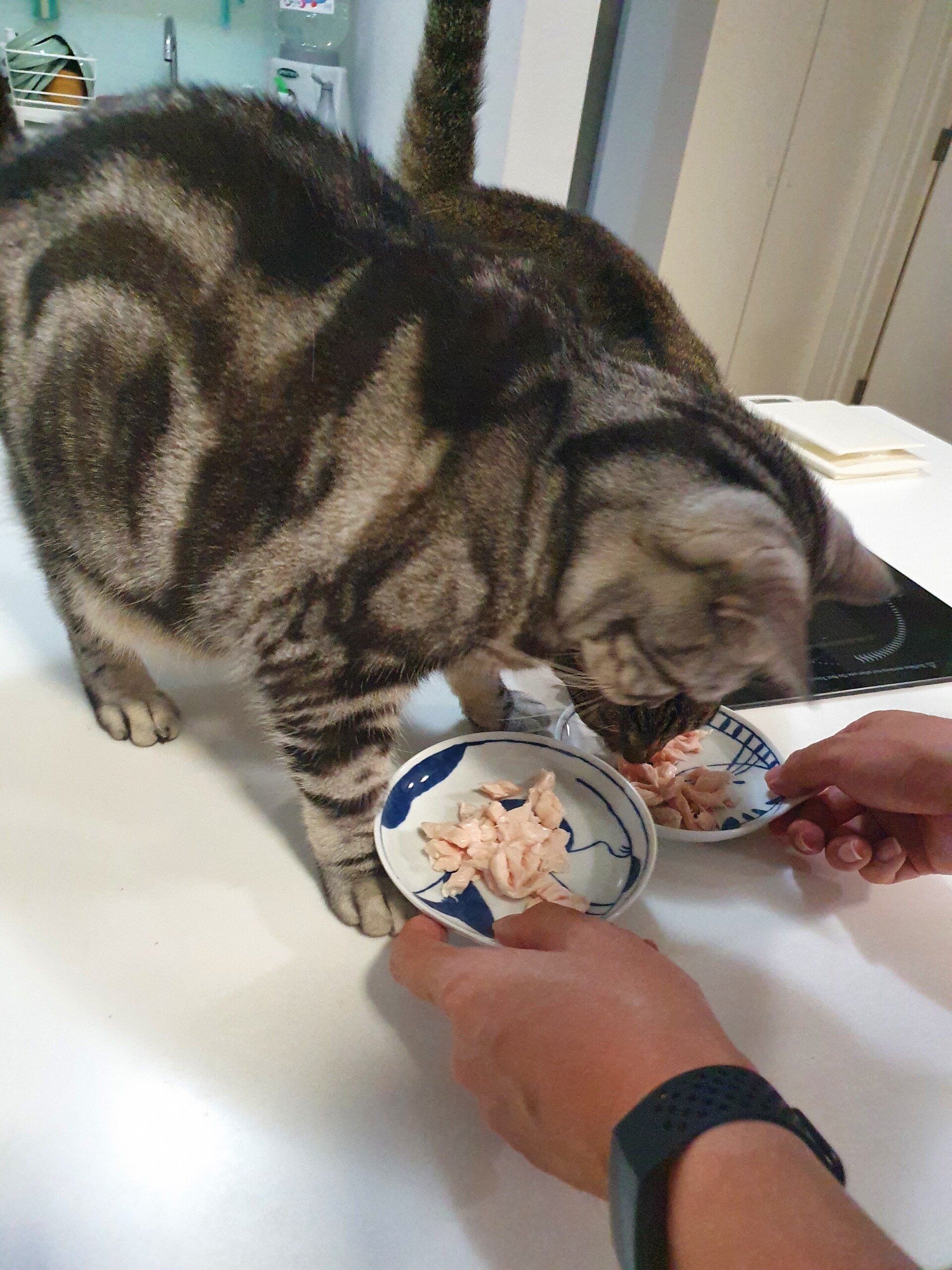 むーたんの命日の日、人間とむーたんは鯖を食べましたが、にゃんずには低温調理した鶏むね肉をあげました。