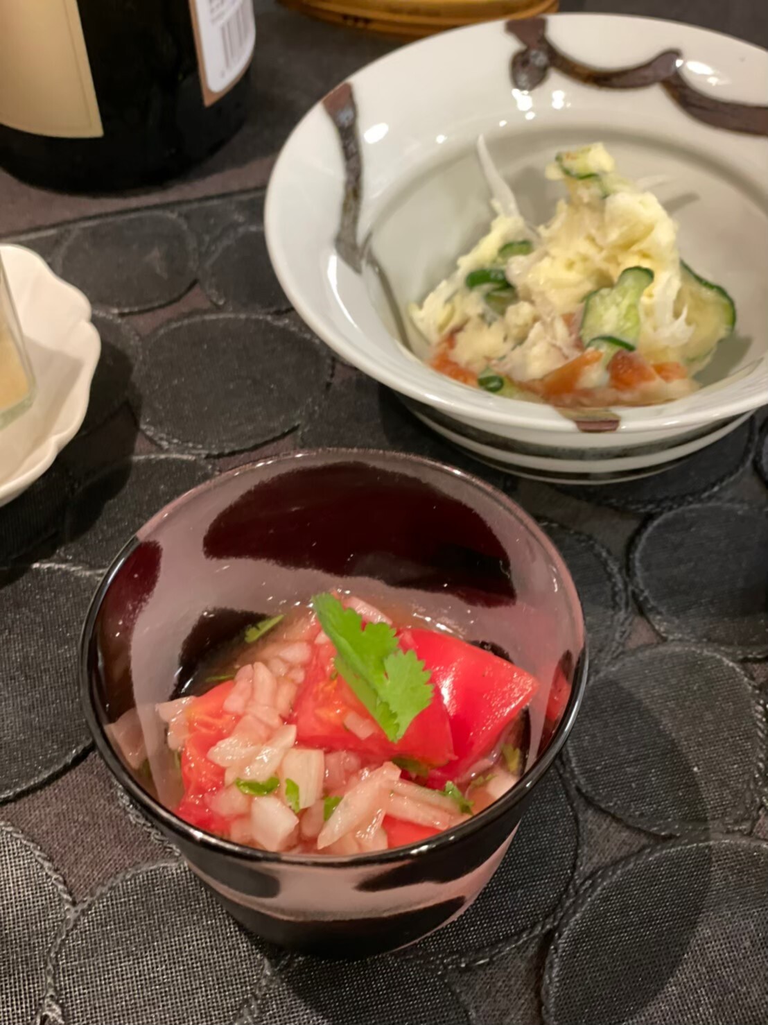 おかずは他にもポテトサラダやトマトのパクチー和えなどたくさん…