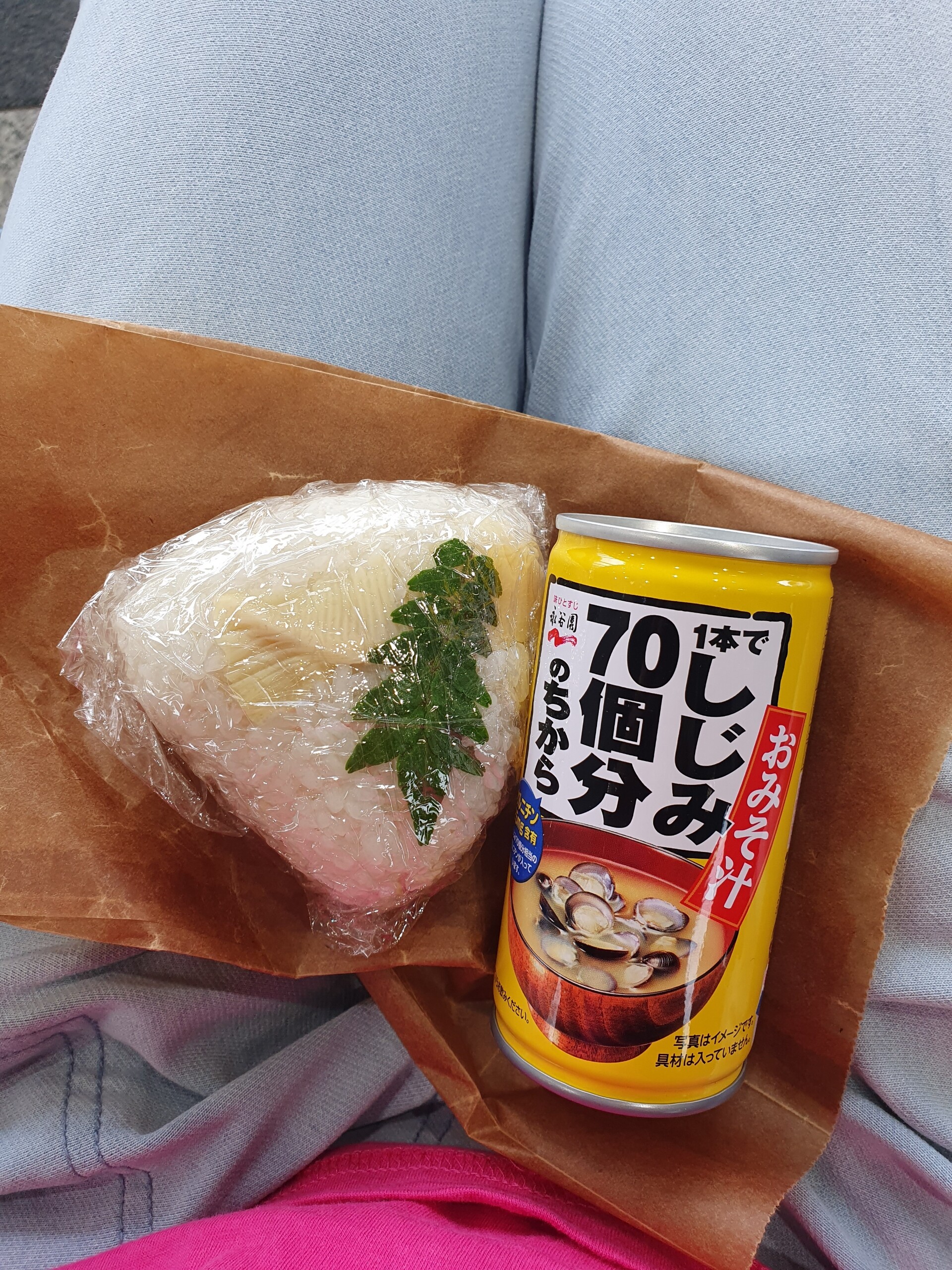 次の日の朝、京都まで行く私にjoli!joli!さんが残ったたけのこご飯をおにぎりにしてくれました。