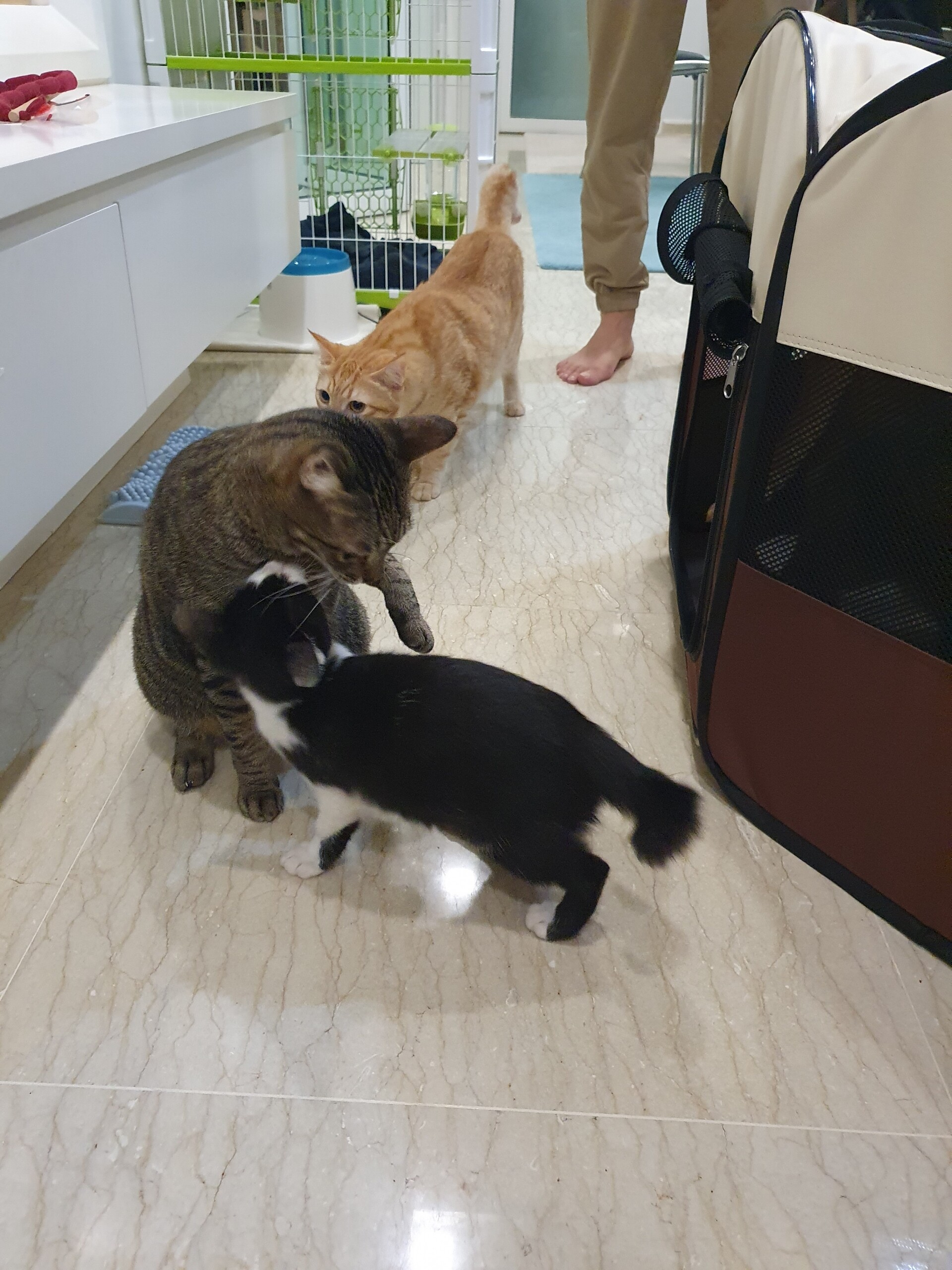 これは意外でした。一番ズンズン行くかと思ってました😁やっぱり温室育ちだから自分より小さい子猫見た事無いしなんだこれ?って思ったのかな?