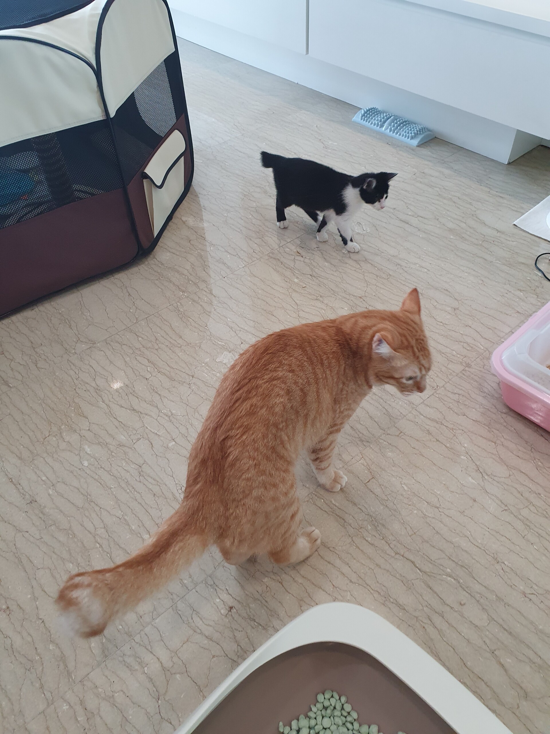 それにしてもカンタ君、肝が据わっていると言うかおおらかと言うか優しいなぁ。茶トラ男子の良さが溢れてます😄でもだからこそハマちゃんにもおもちゃにされそう🤣