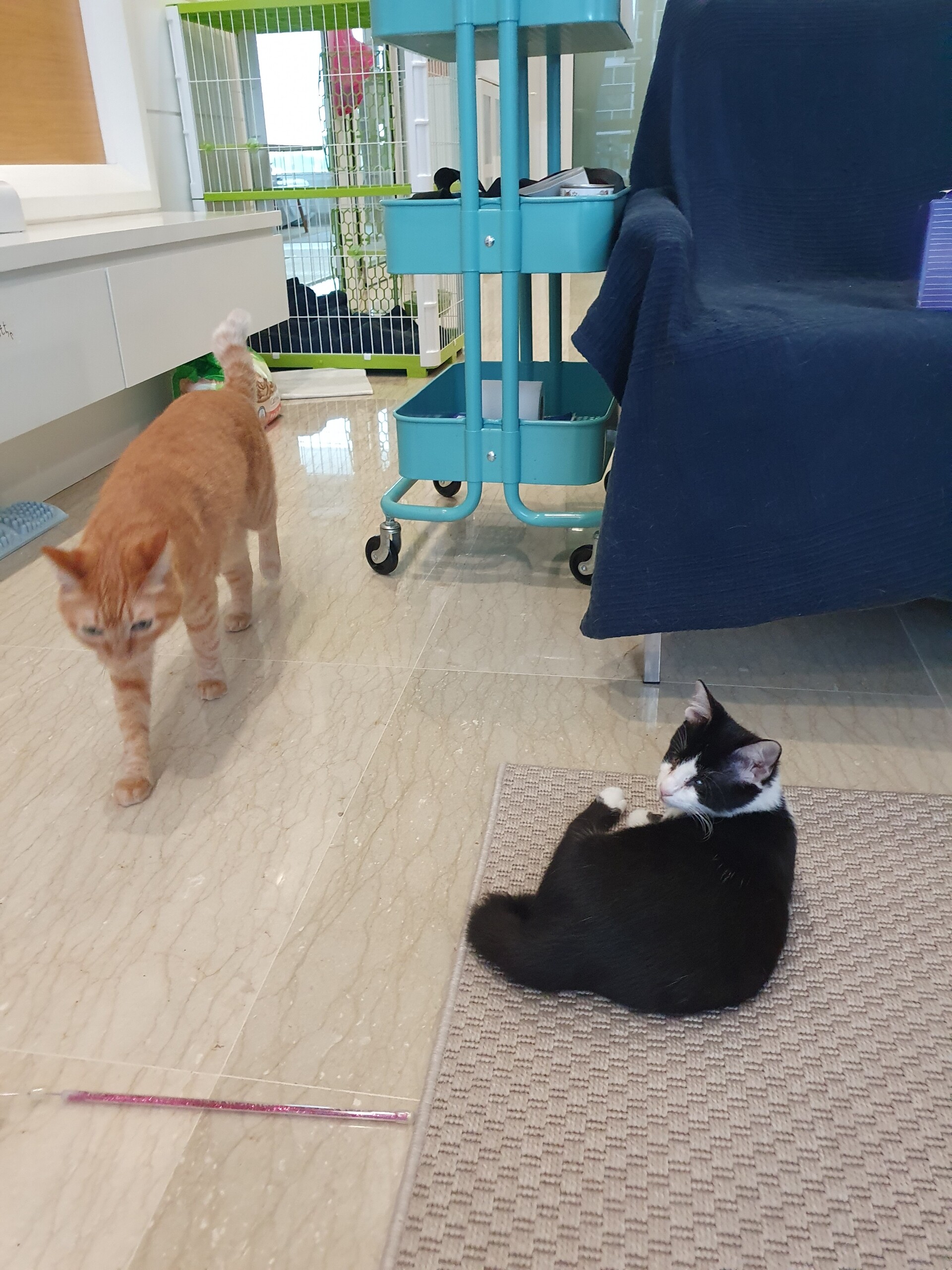 初めての場所に登れたハマちゃん、テンション上がってシータさんに近づきすぎてシャーされました。