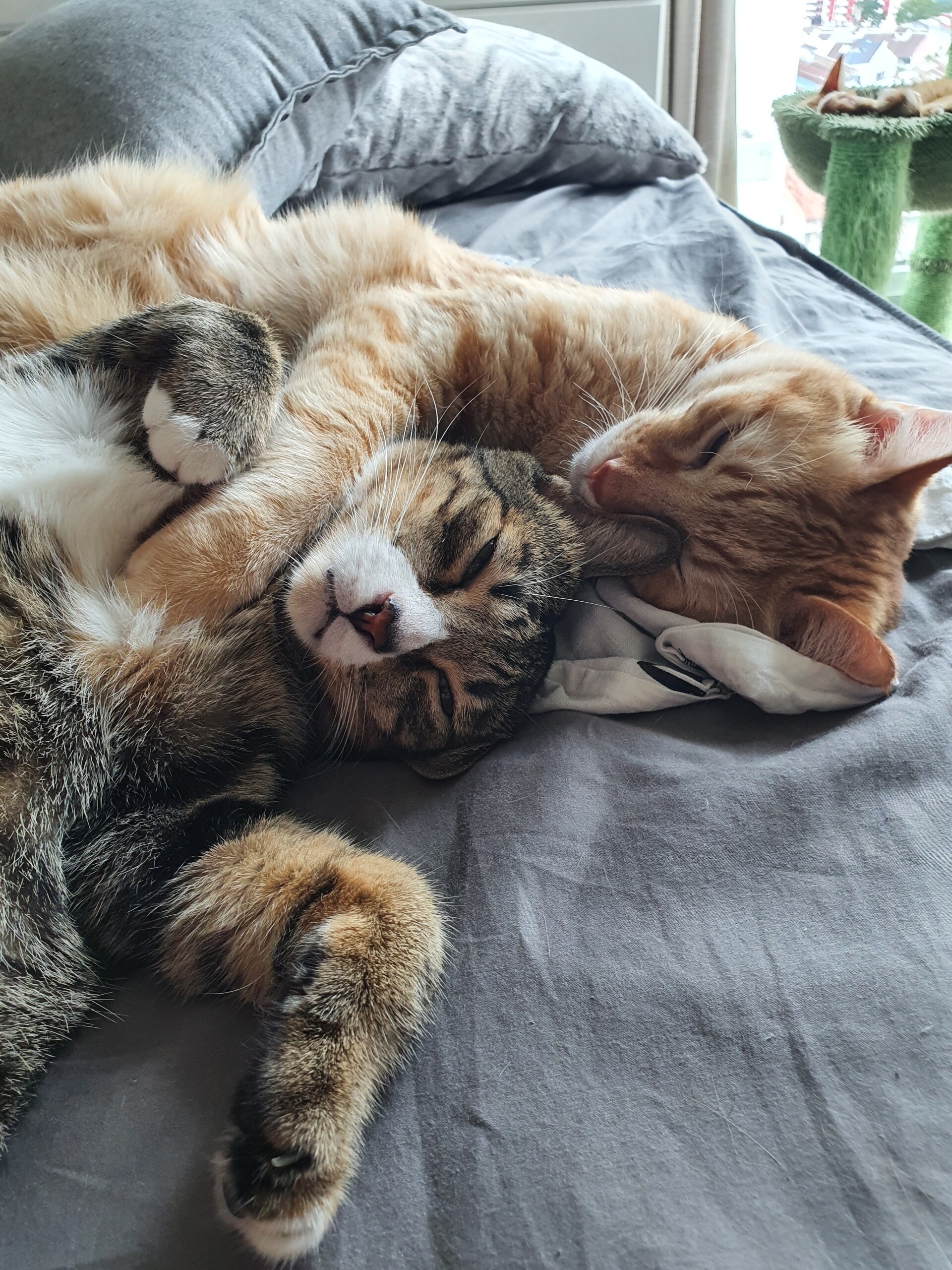 もんちゃんはあんまりべったりくっつくイメージじゃなかったし、保護された頃のちっこいところから拝見しているので、感慨深いです(親戚のおばちゃんの気持ち)✨幸せそうだあ😆🍀