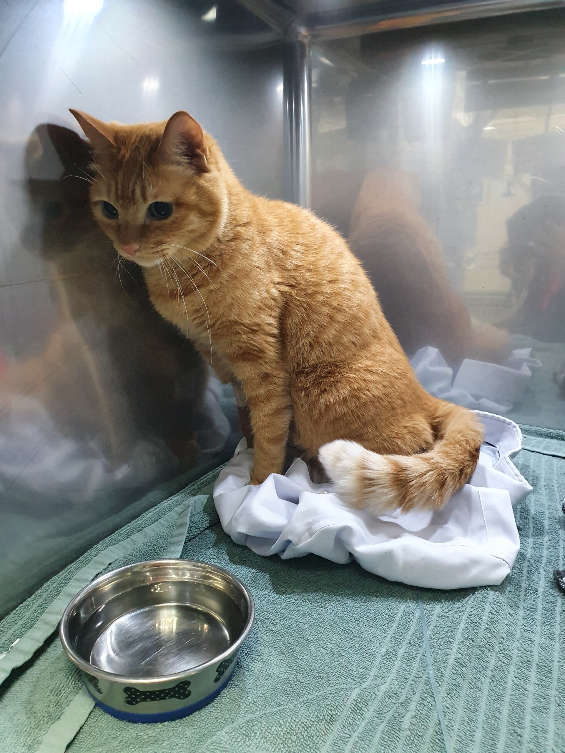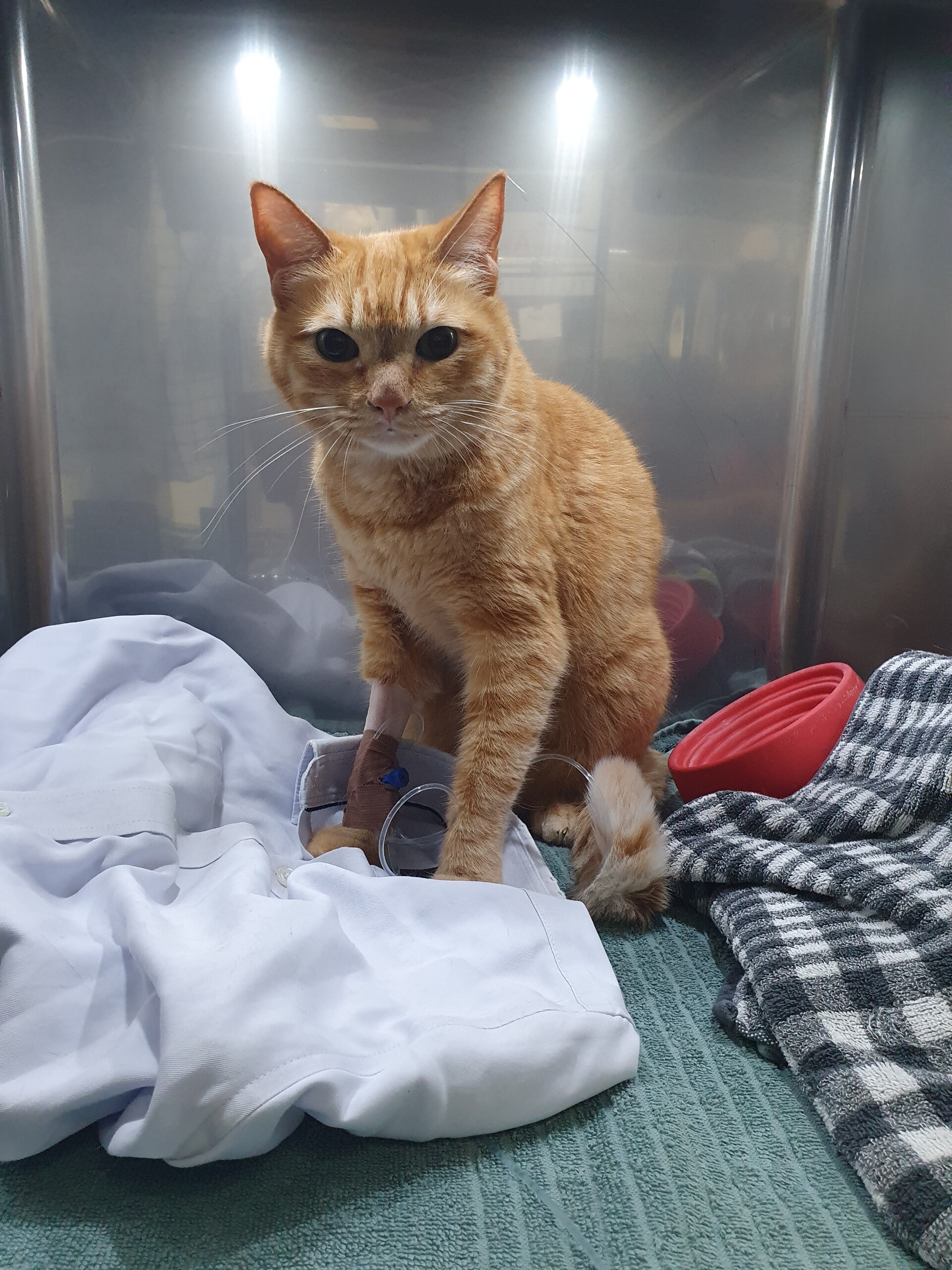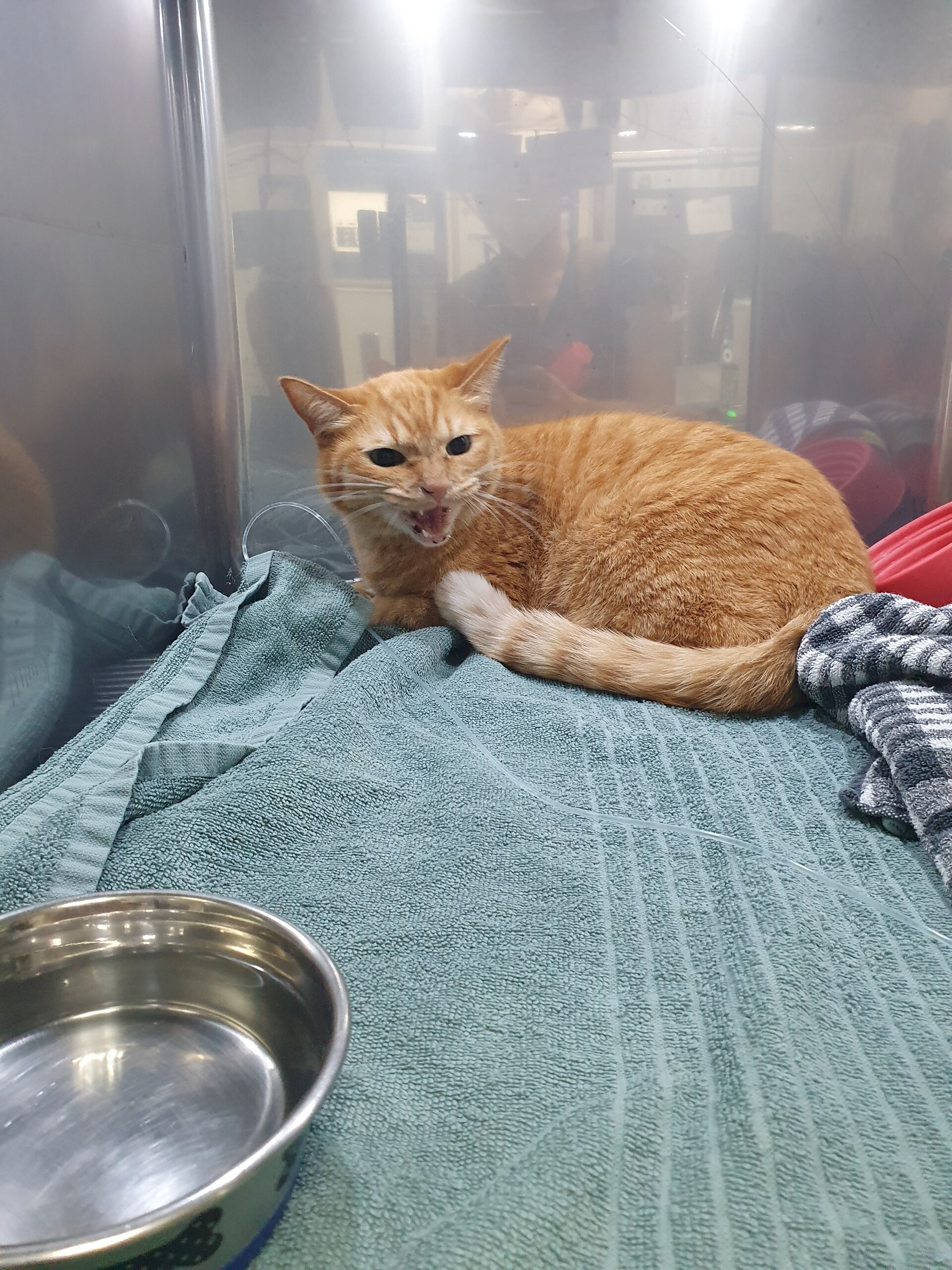 上の小規模猫だけ入院室に移そうとしたけど数時間後まで空きがなく、空きを待ってられないくらいシータさんブチ切れだったので、静かな部屋にある酸素室に入れてくれたそうです。