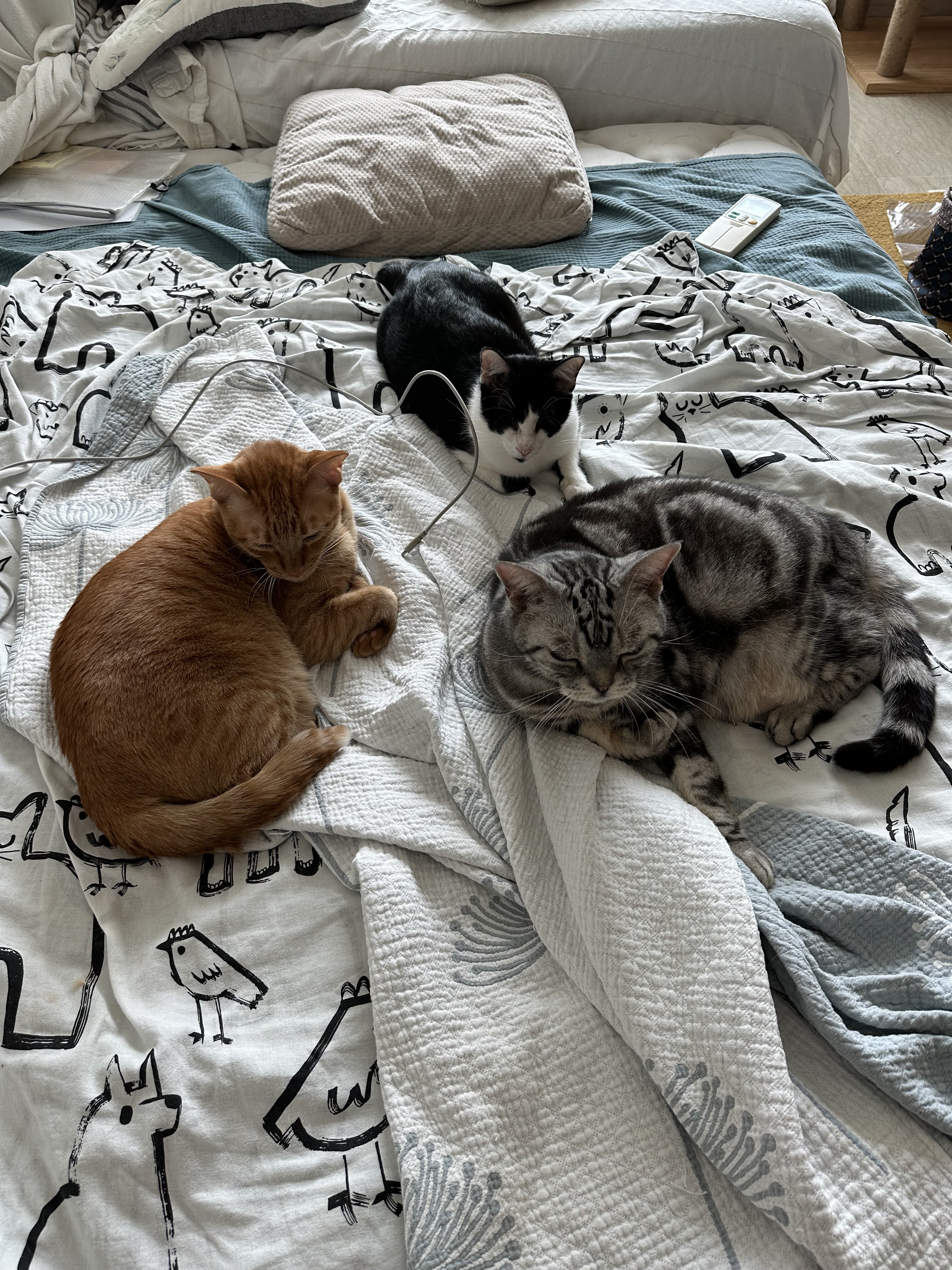 起こした本にゃんたちは、昼間にすやすや。