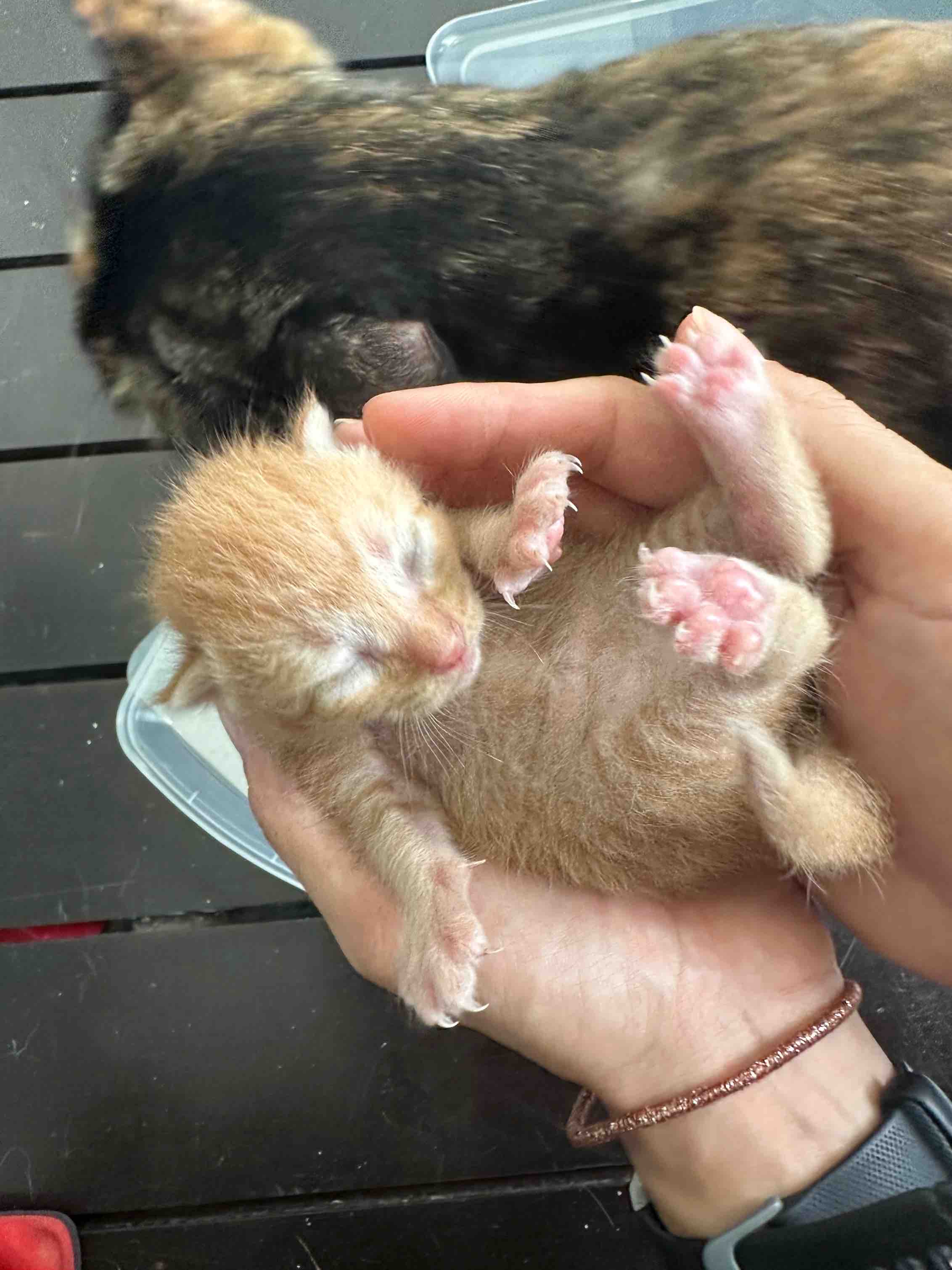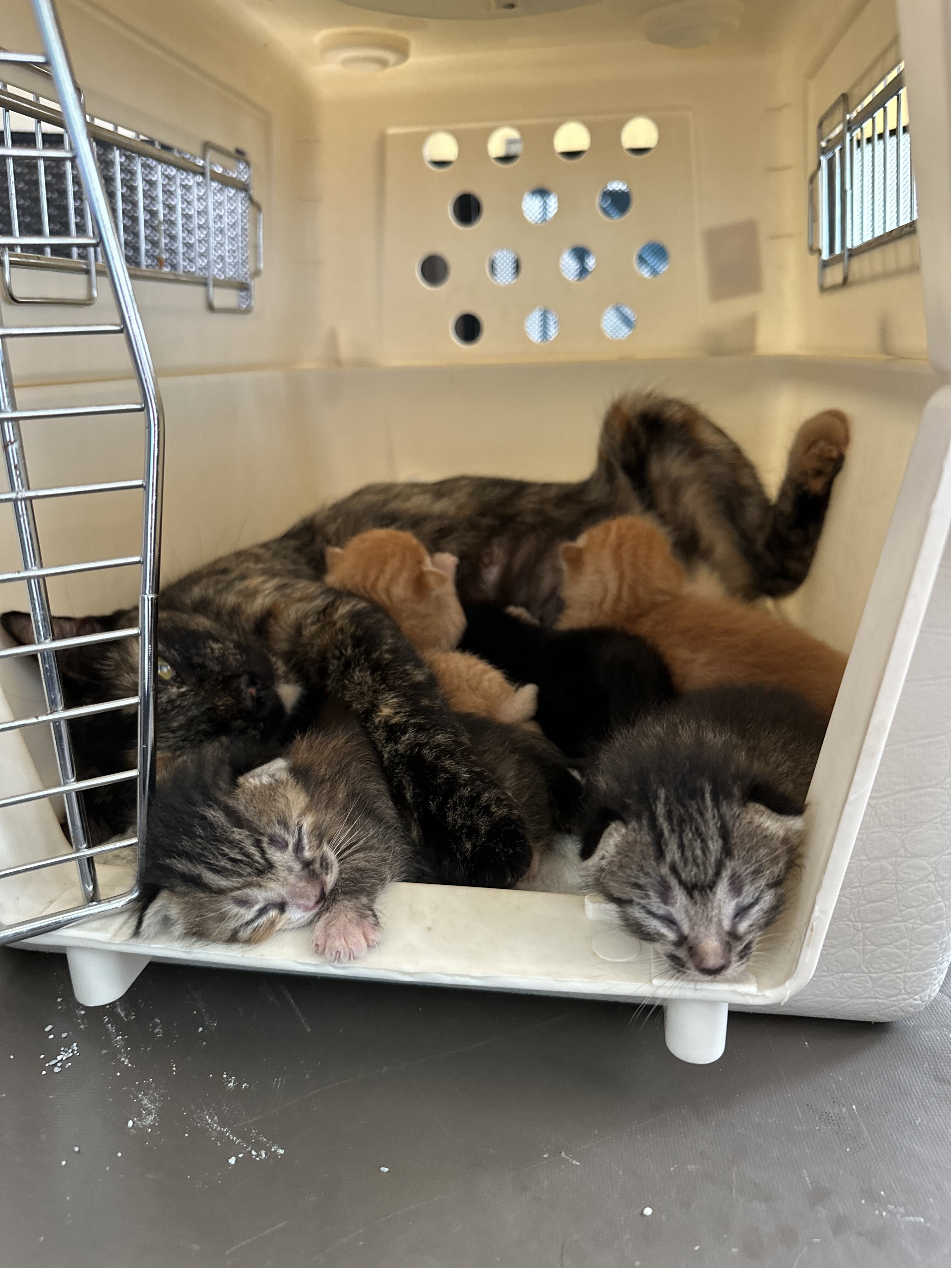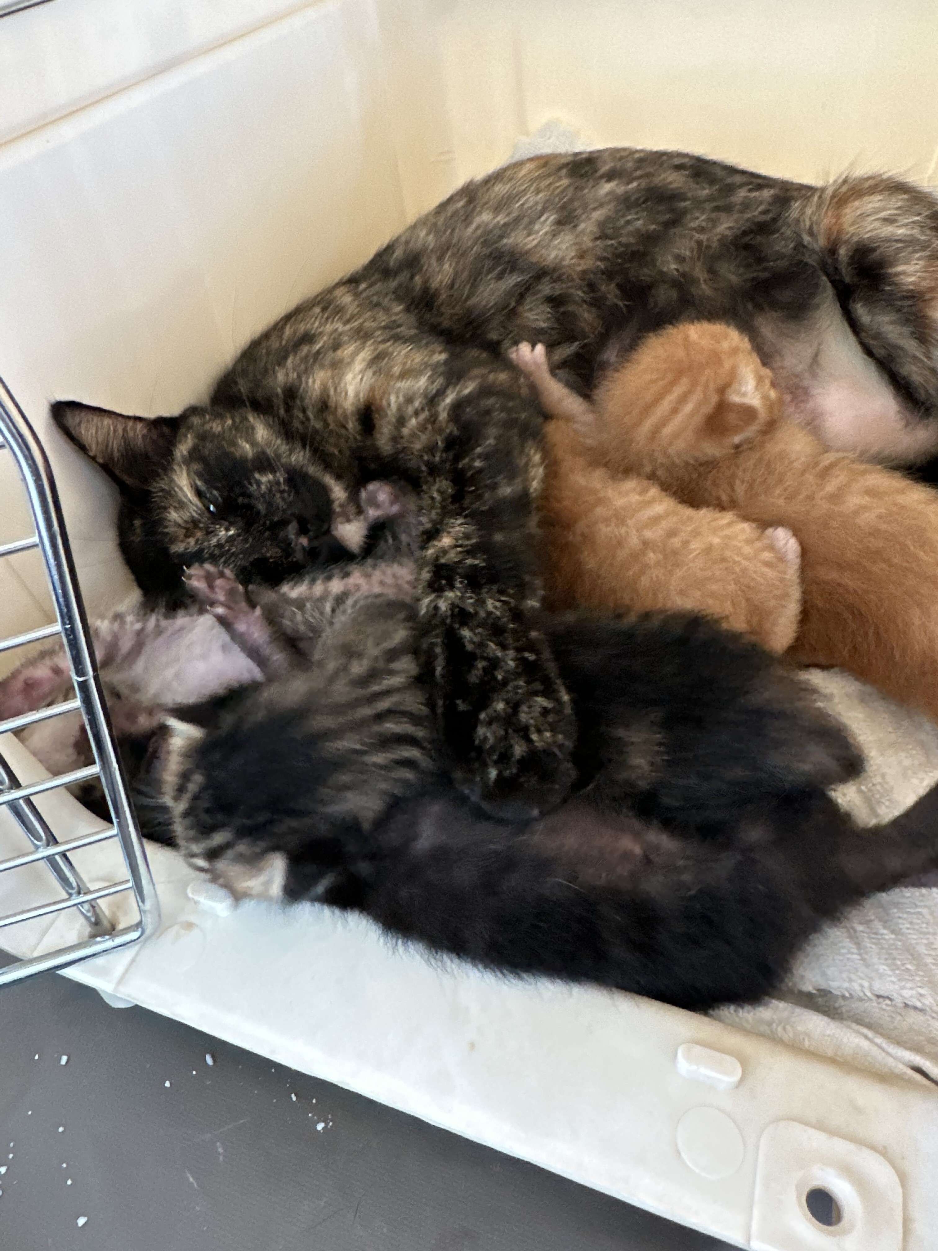 昨日、産まれたての子猫5匹と母猫を保護しました。