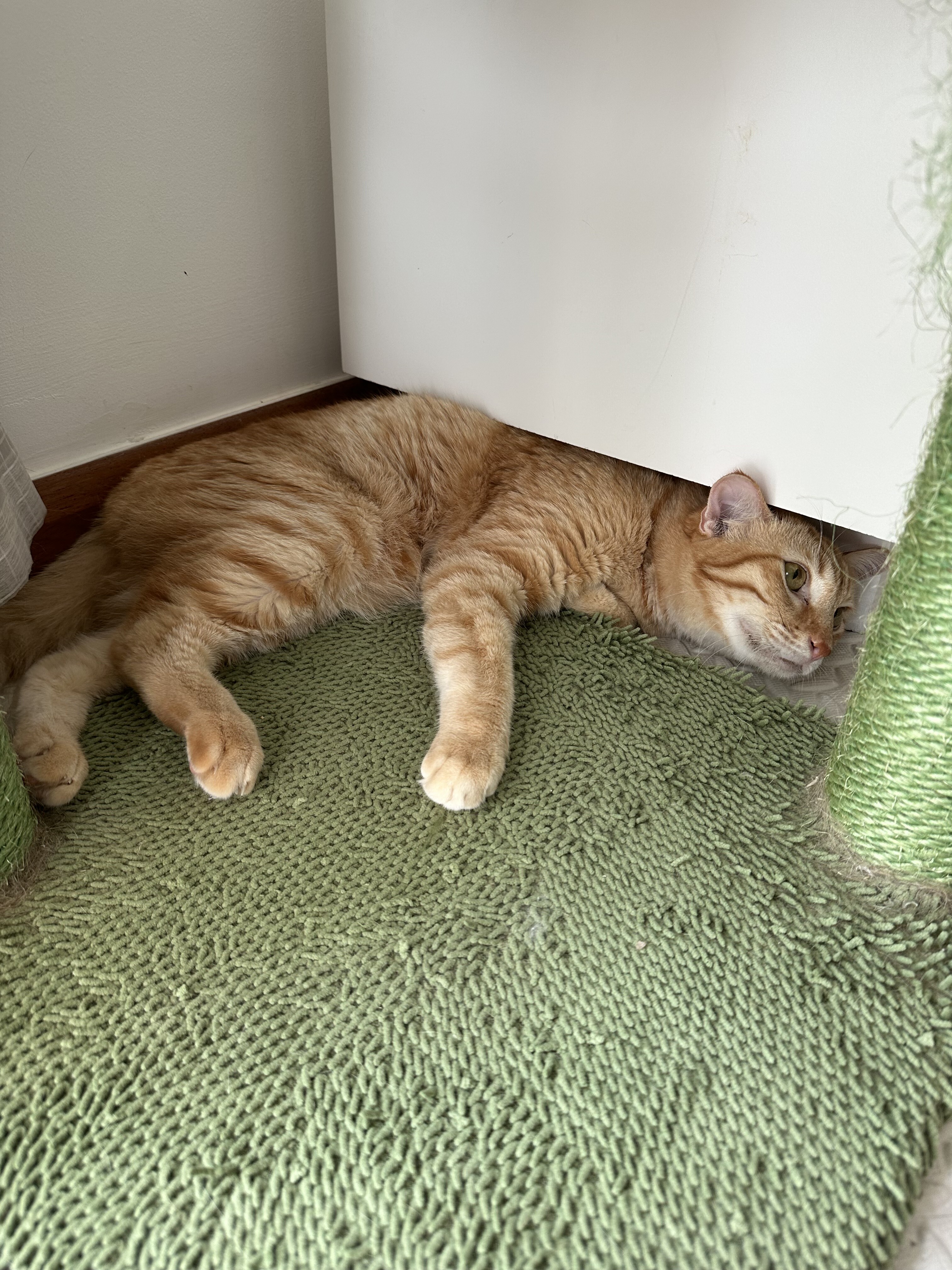 ちょうど2、3日前からおすしーずを部屋から出してフリーにする時間を増やしてたので、いつも飄々としてるもんちゃんだけどさすがにストレスだったのかな…?と、1日様子を見ました。