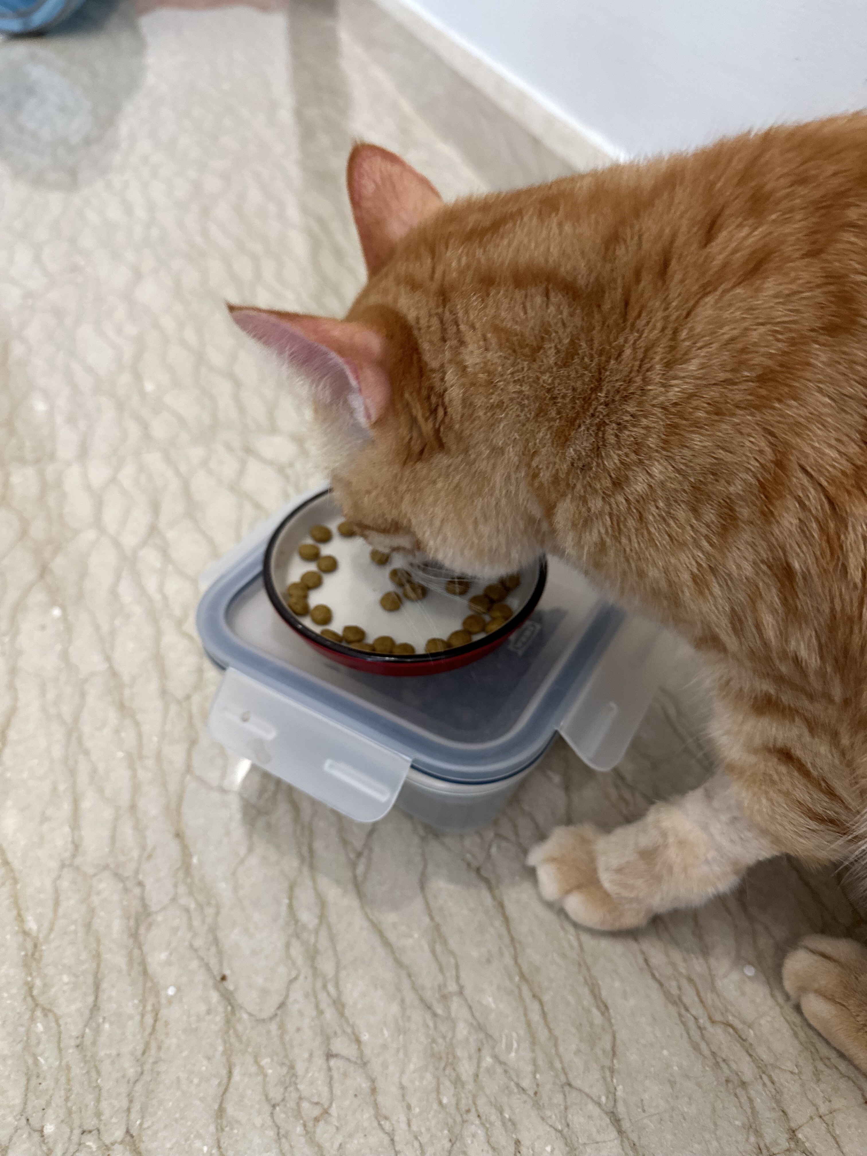 いつも朝7時前に朝ごはんあげるんですがその時に食べなかったもんちゃん。