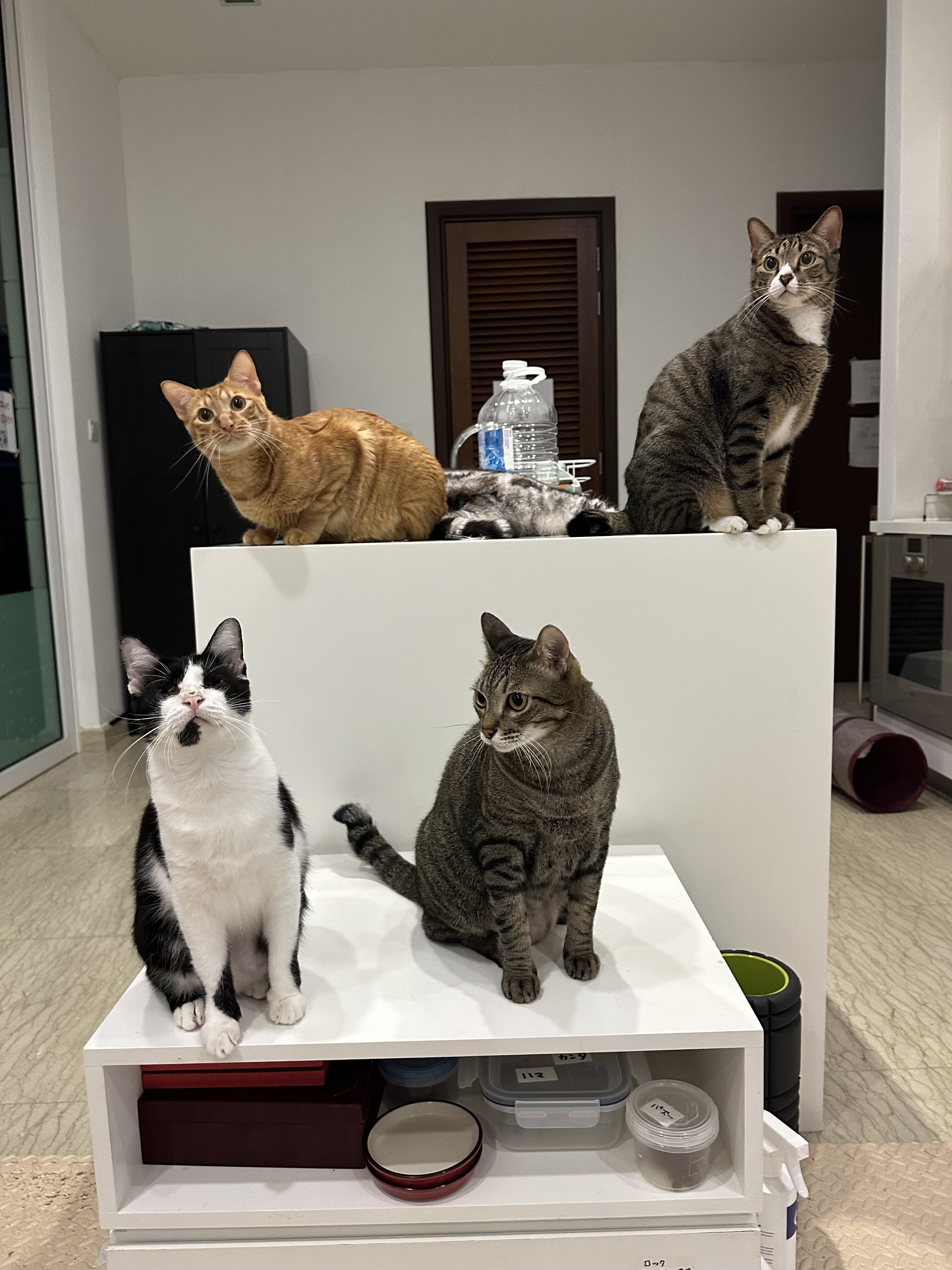 現在、マレーシアの首都クアラルンプールに猫8匹と人間2人で住んでいます。