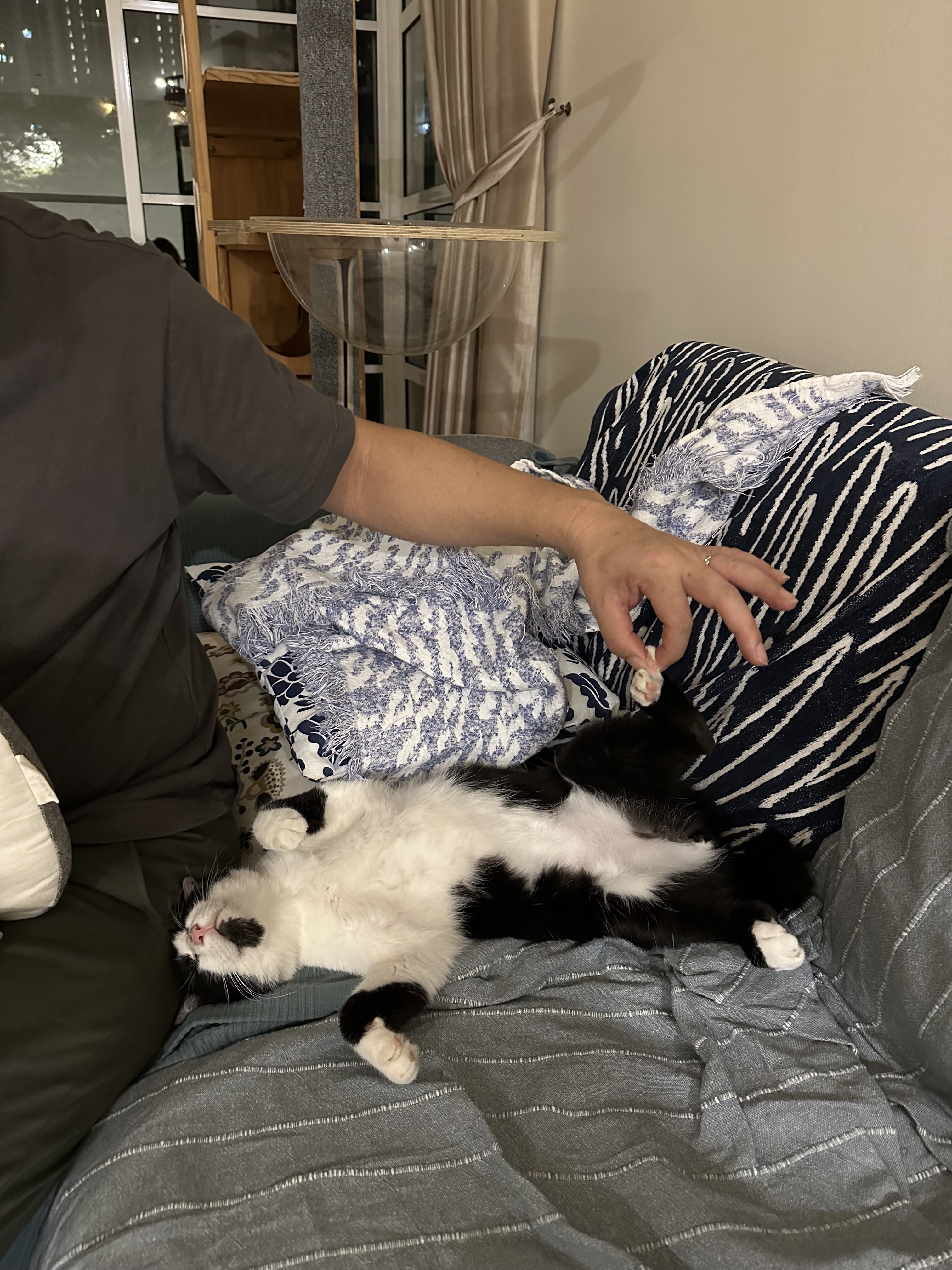 それにしても肉球つままれても全身をUR氏に委ねちゃうハマちゃん、可愛すぎます。こんなにも信頼されると絶対手離せないですよね。ハマちゃん幸せな猫生送ってますね☺️