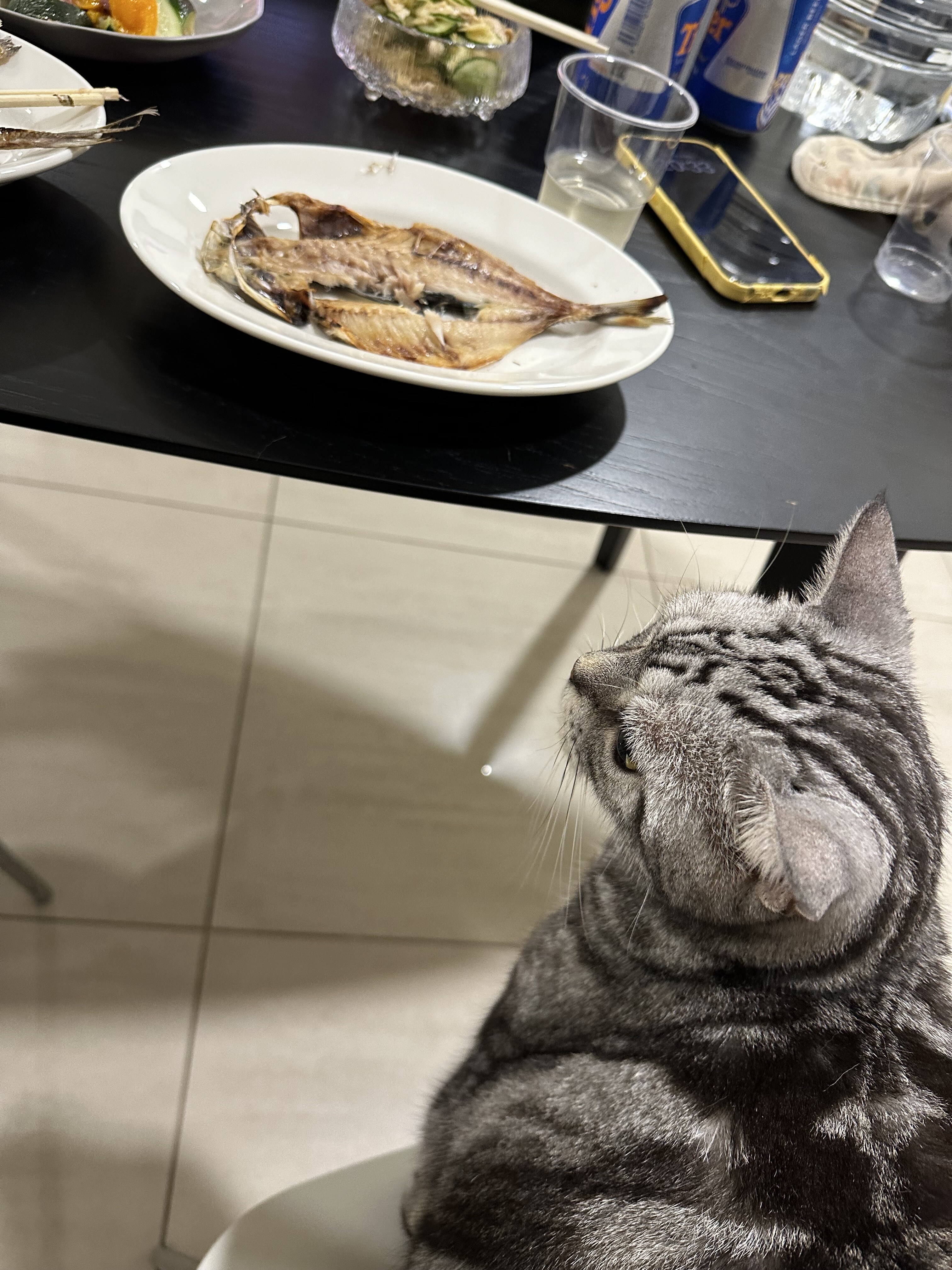 夜には、人間のごはんを狙いに来るまでになりました🥹