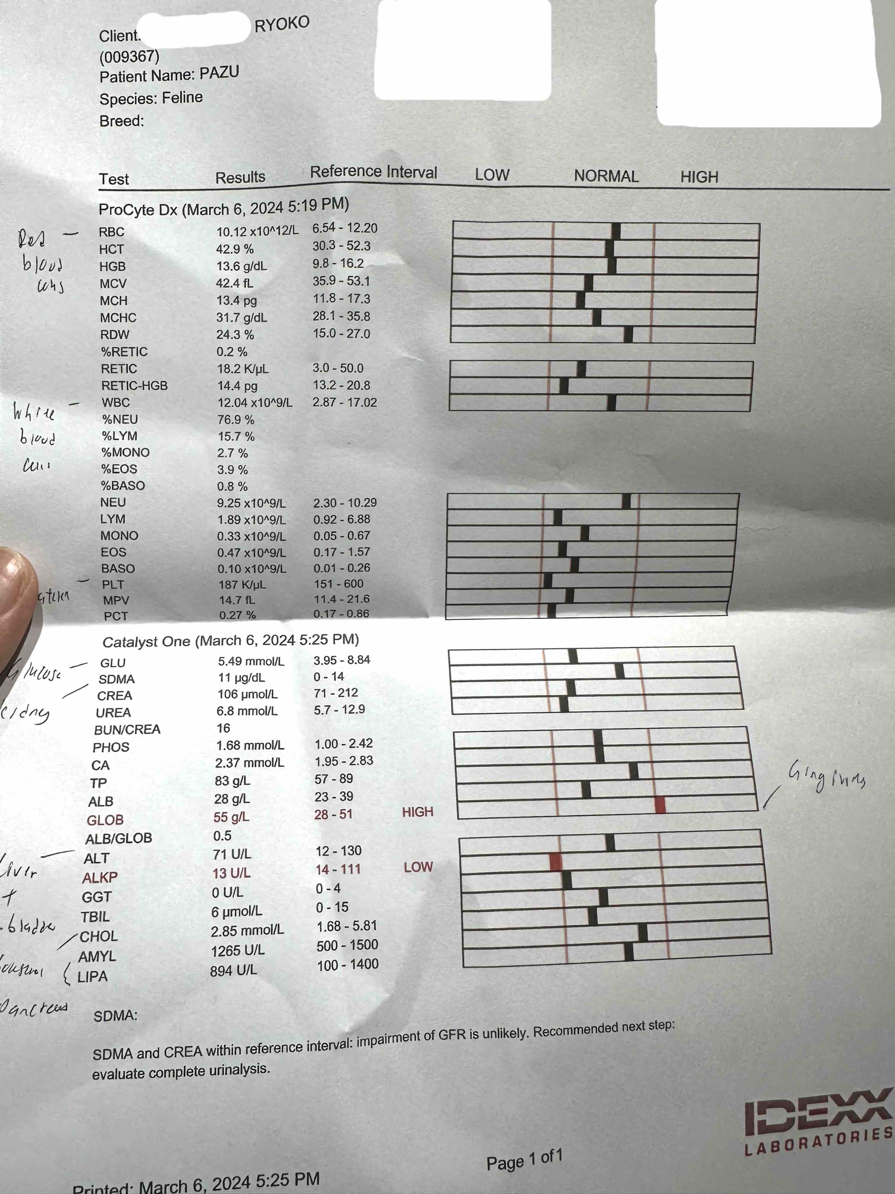 猫の急な食欲不振でありがちな膵炎もなさそう。