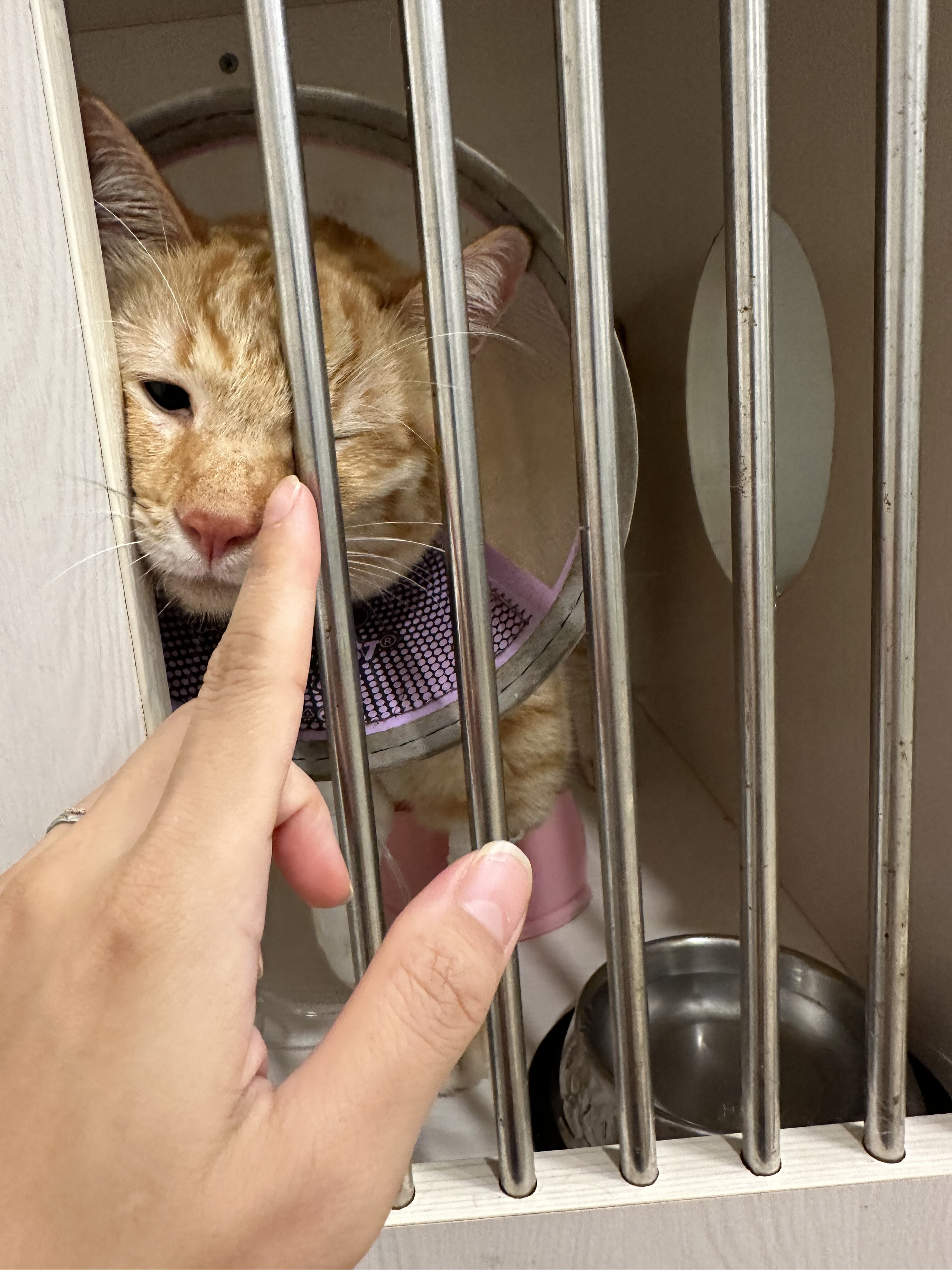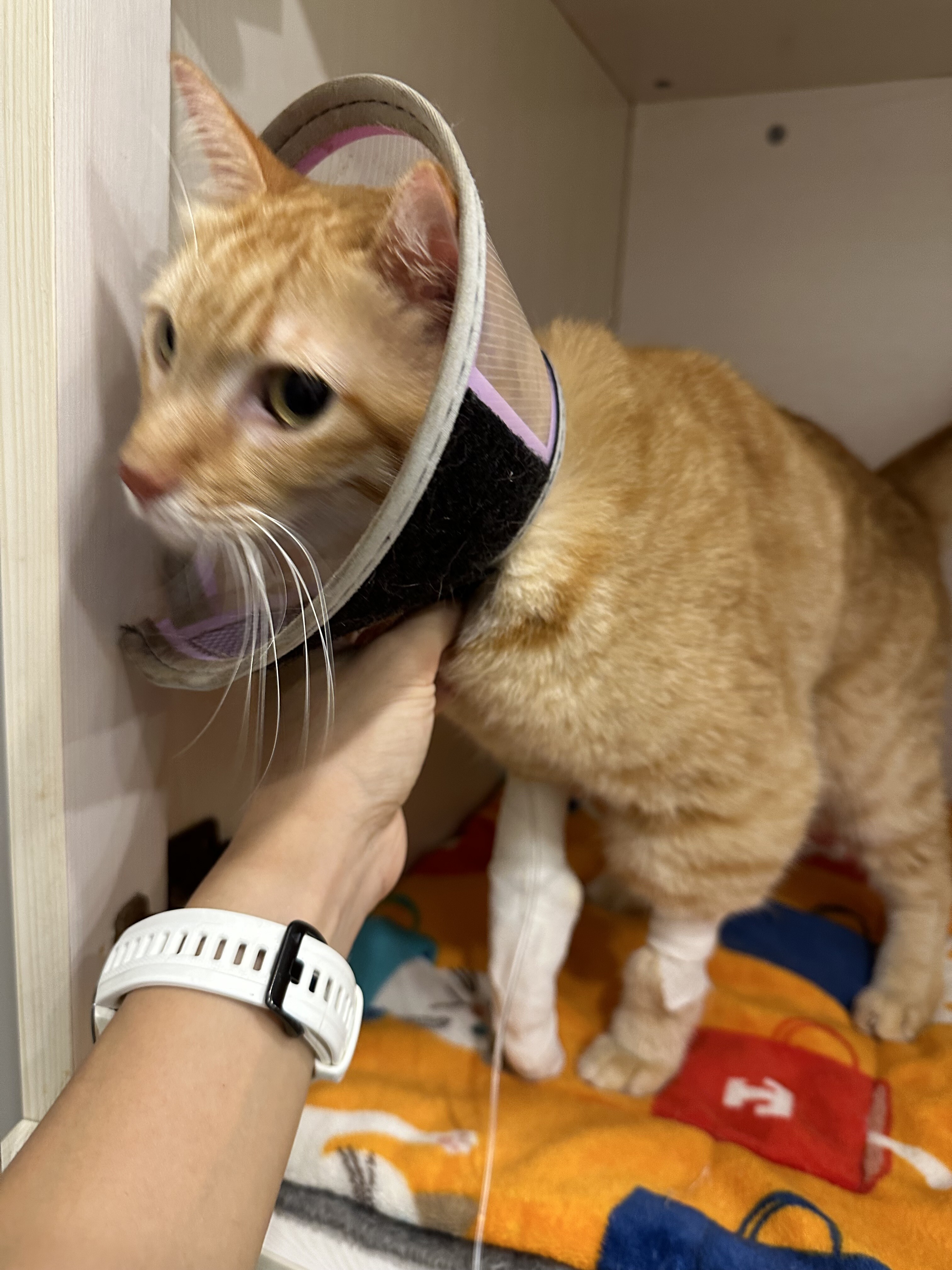 3日目の朝にその隙に点滴の針を自分で外して、引っこ抜いた時に出血してケージの中血まみれになってたそうです…💦