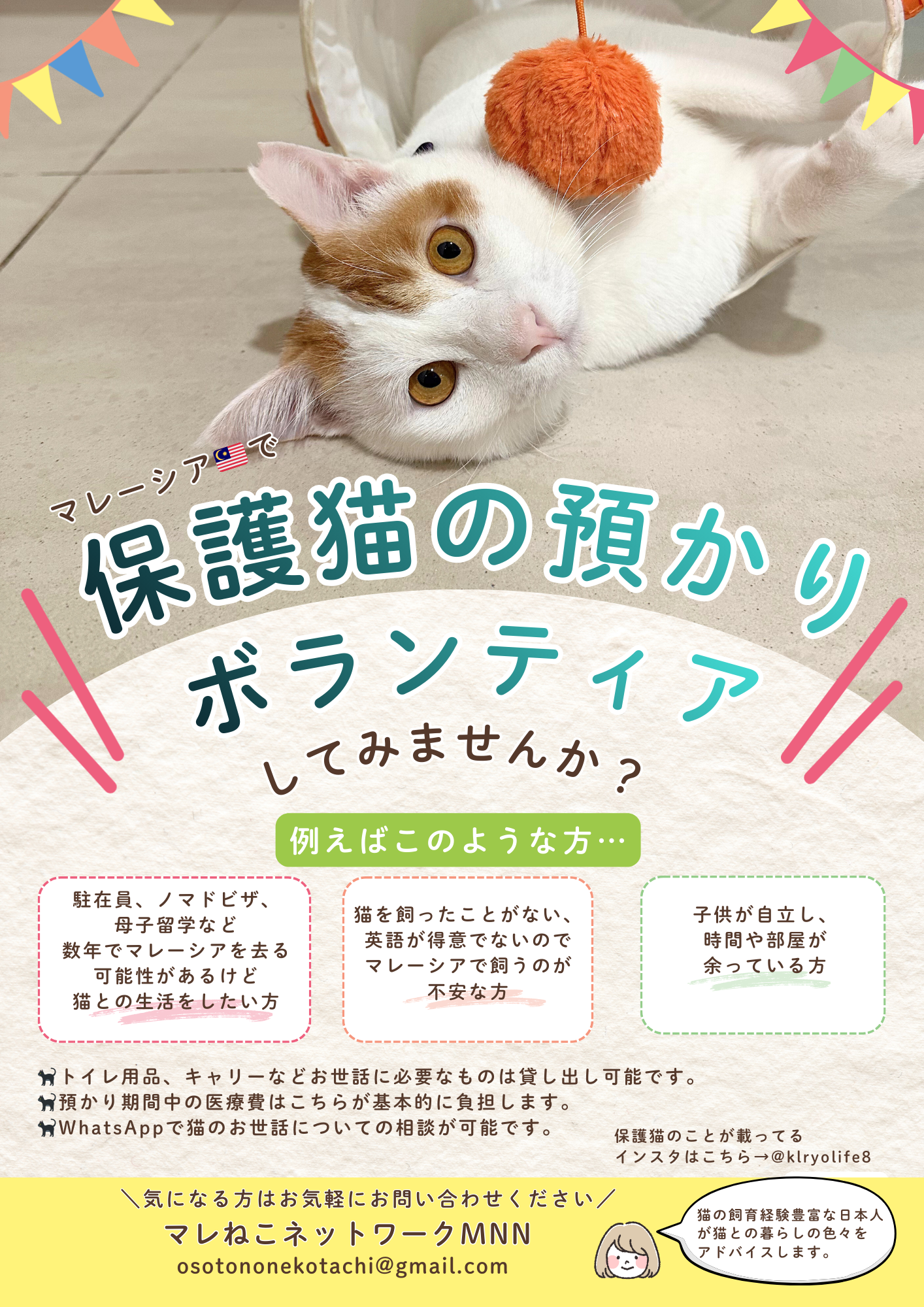 飼うのは難しいけどマレーシアいる間に猫との暮らしを体験してみたいという方、一時預かりさんも募集してます。