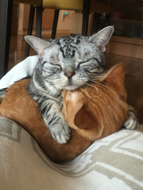 にゃんずの間に埋もれようとすると…嫌がられることが多いのでいつもそっと見守ってます( ̄◇ ̄;)