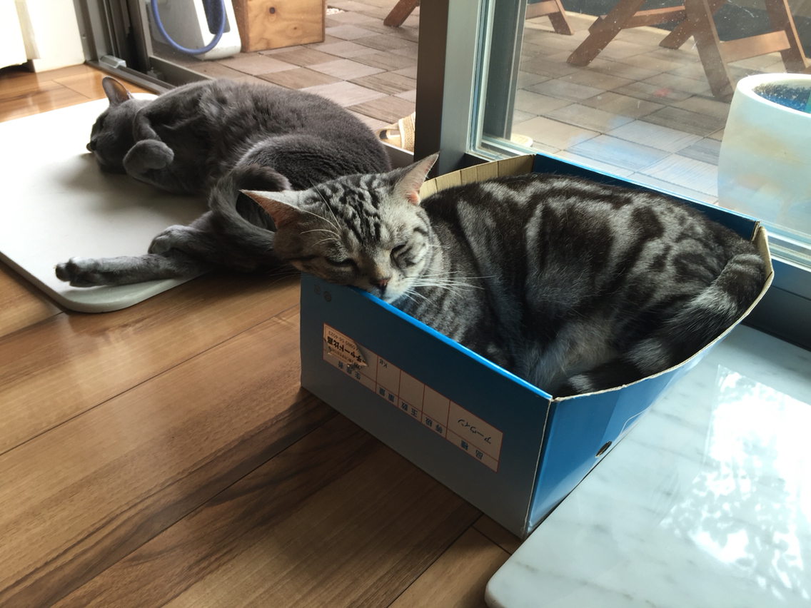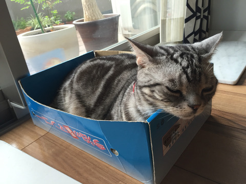 とはいえ、箱で丸くなるのは夏は暑そうな気もするんだけど…