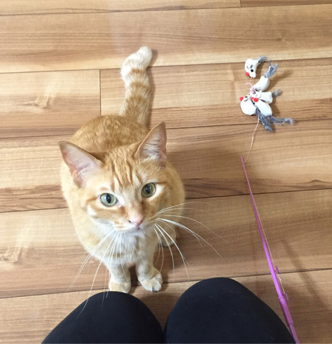 ほら、わたしみたいな可愛い猫がやってきてあげたんだからさっさとおもちゃを動かしなさいよ。