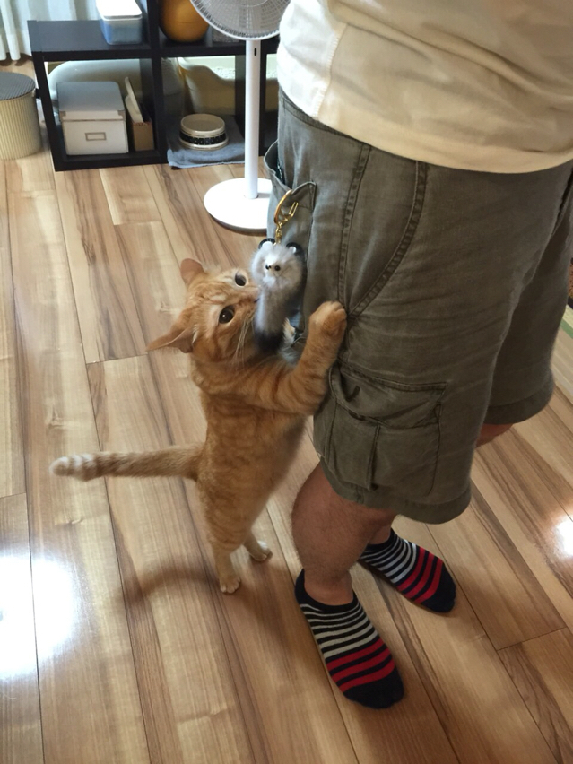 シータさんが旦那様の腰に下げているふわもこのキーホルダー(なんだっけネズミさん?ハリネズミさん?)にじゃれるこの写真、大好きです