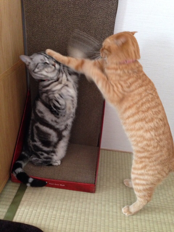 でも、今日の写真のパズーちゃんとの猫パンチは手が長いって有利だーと思い(爆)(笑)してしまいました。パズーちゃんお目目つぶってるし~💛