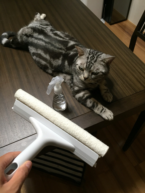 にゃんずに応援?されながら4枚の窓ガラスを掃除すること30分ほど。