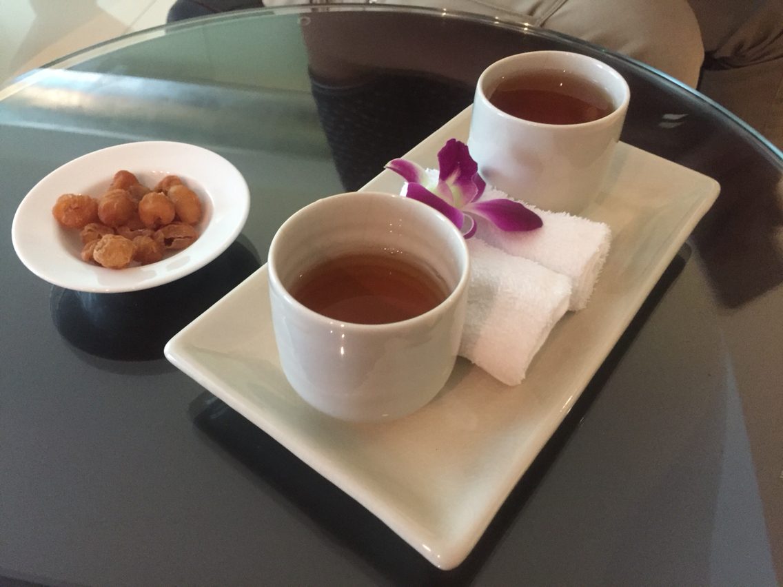 マッサージの後には甘いお茶とお茶菓子。なんだかセレブもどきです。