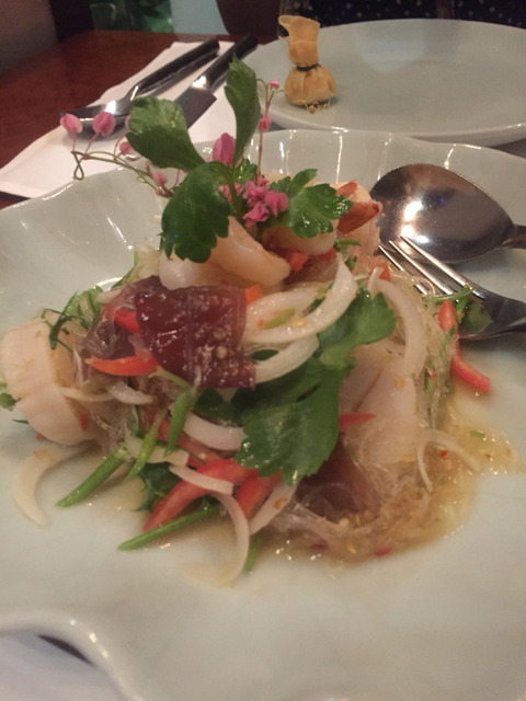 店員さんに辛いのは大丈夫ですか?と聞かれたので(英語です)「大丈夫です」と答えると(UR氏が 笑)なかなかの辛さのヤムウンセンが出てきて汗をかきながら食べました。でも、辛いだけじゃなくて美味しくてお箸が止まりません。