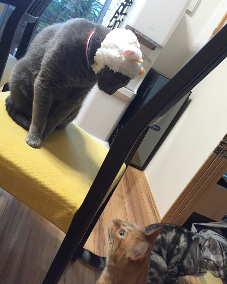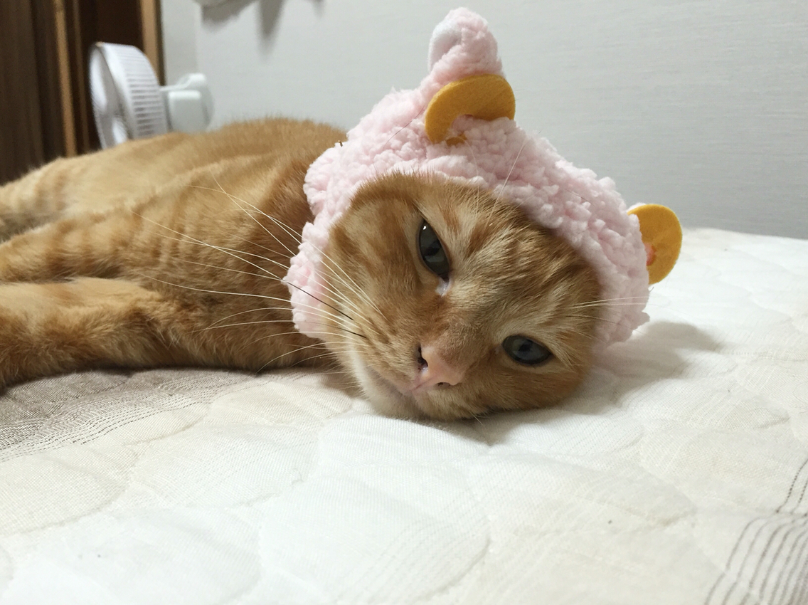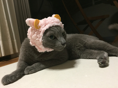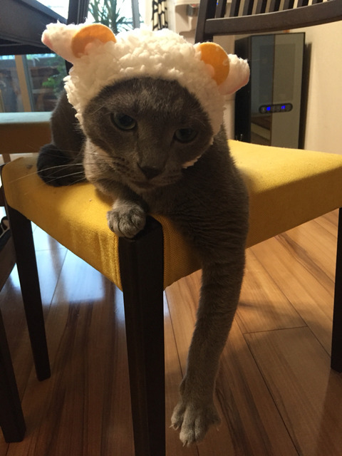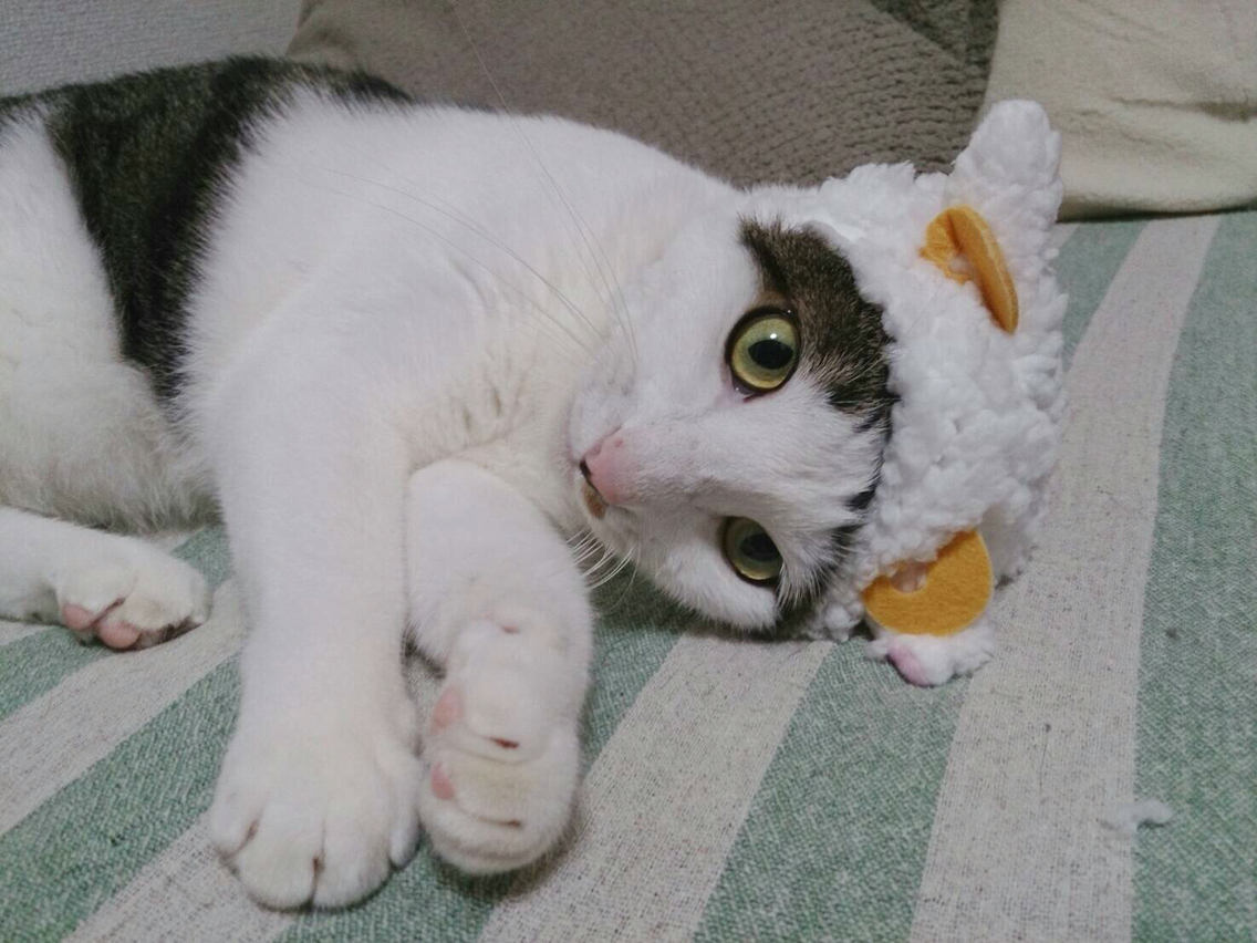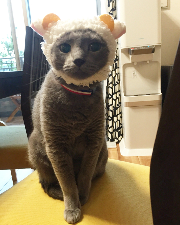 インスタとかで見る激カワの猫用かぶりもの「ねこひつじ」ではないですかー!!