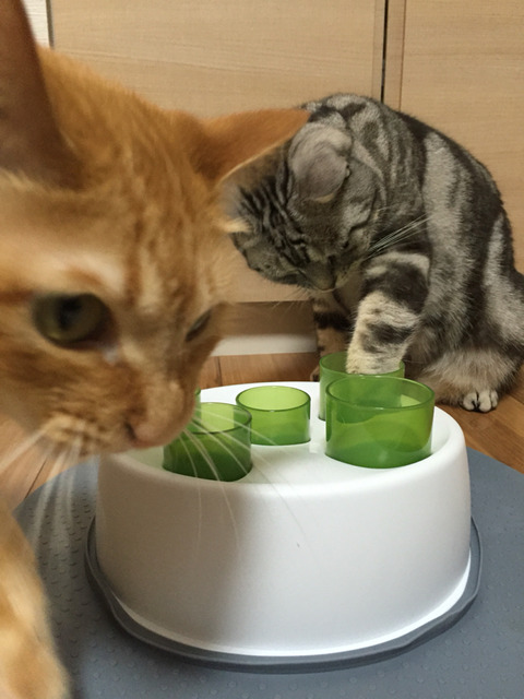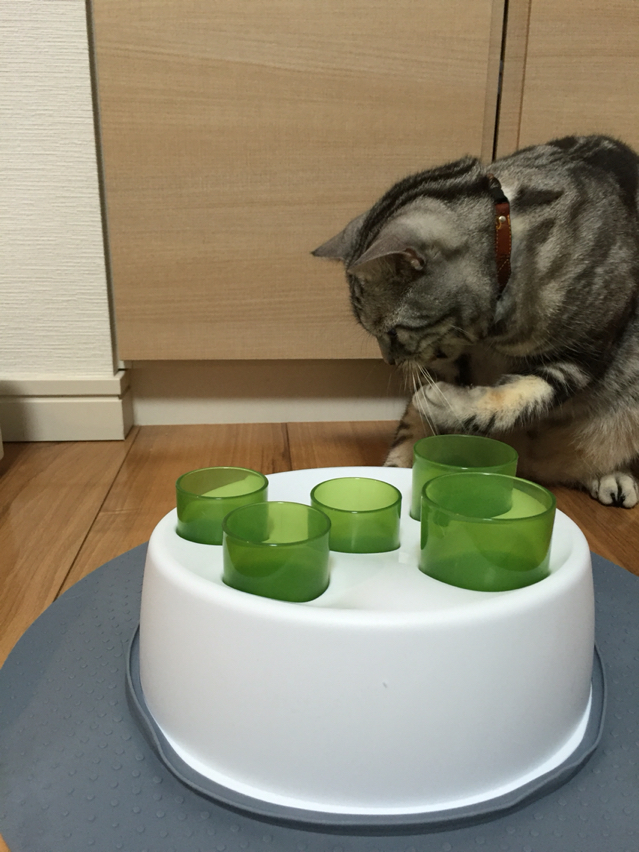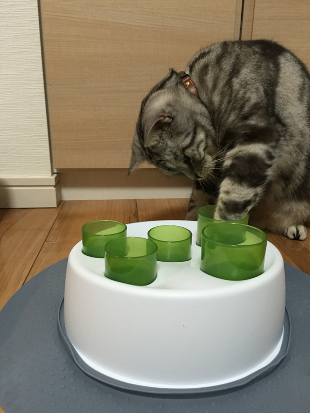 簡単に食べ物が手に入るのではなく、このように工夫しながら食べるというのは猫の狩猟本能を刺激して良いのだとか。