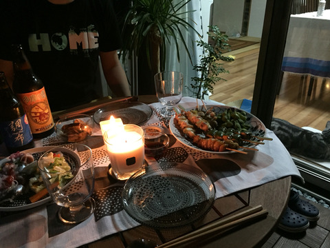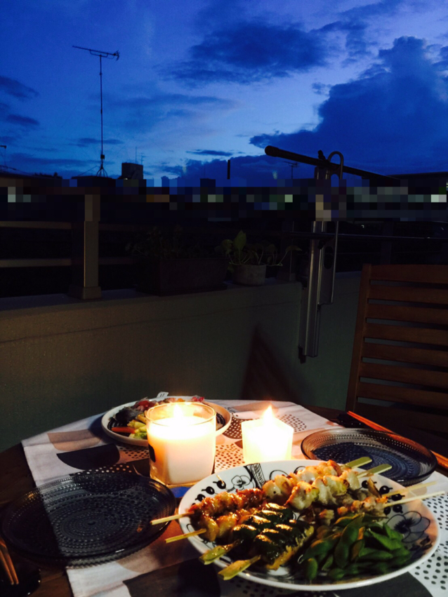 UR氏がベランダを綺麗にしてくれたので、ベランダで晩ご飯を食べよう!ということになりました。