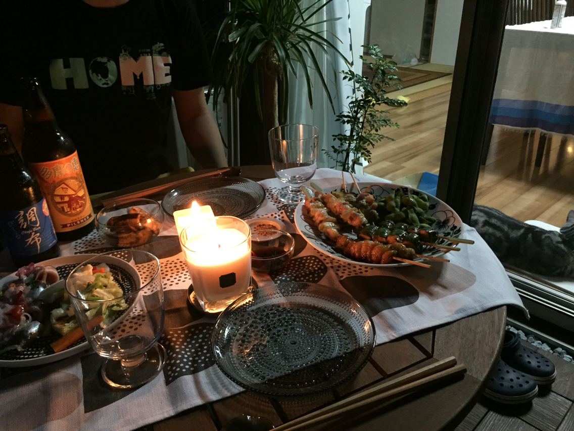 小さい方のキャンドルはお友達のchamoshuさんの手作りです。虫除けに効くアロマが入ってるとのこと。