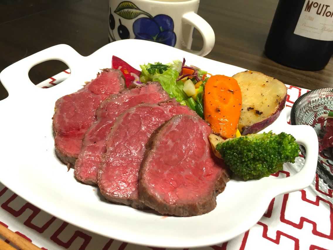 ローストビーフ、簡単にできたので次はもう少し火を通してリベンジしてみようと思います(*^^*)
