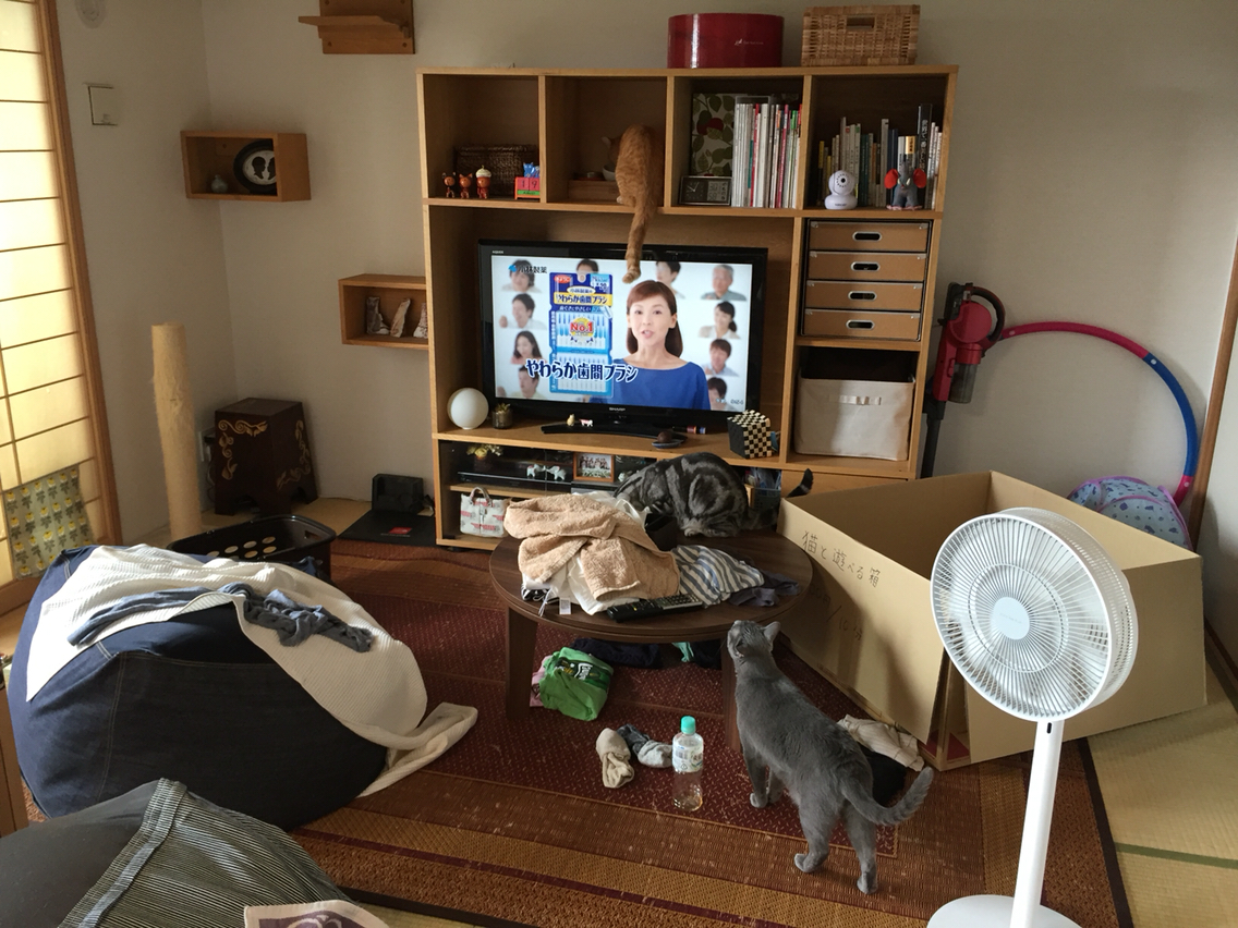 2人とも元汚部屋住人だからというのもあり(一緒にすんな!と南の方から声が聞こえそうですが)、帰国中は遊ぶの重視で片付け疎かになるというのもあります。
